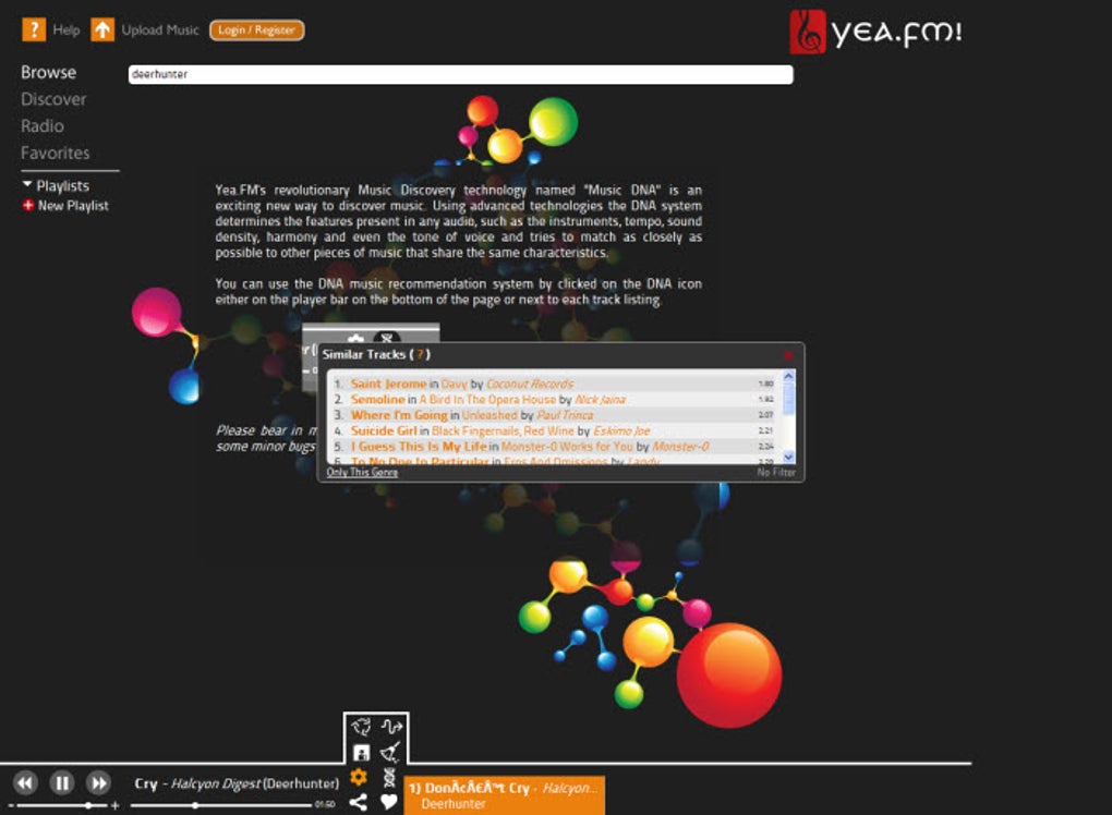 Yea.fm tiene las opciones habituales para escuchar artistas relacionados, radios por géneros y listas de éxitos. También puedes subir tu propia música para escucharla si no está en el catálogo.